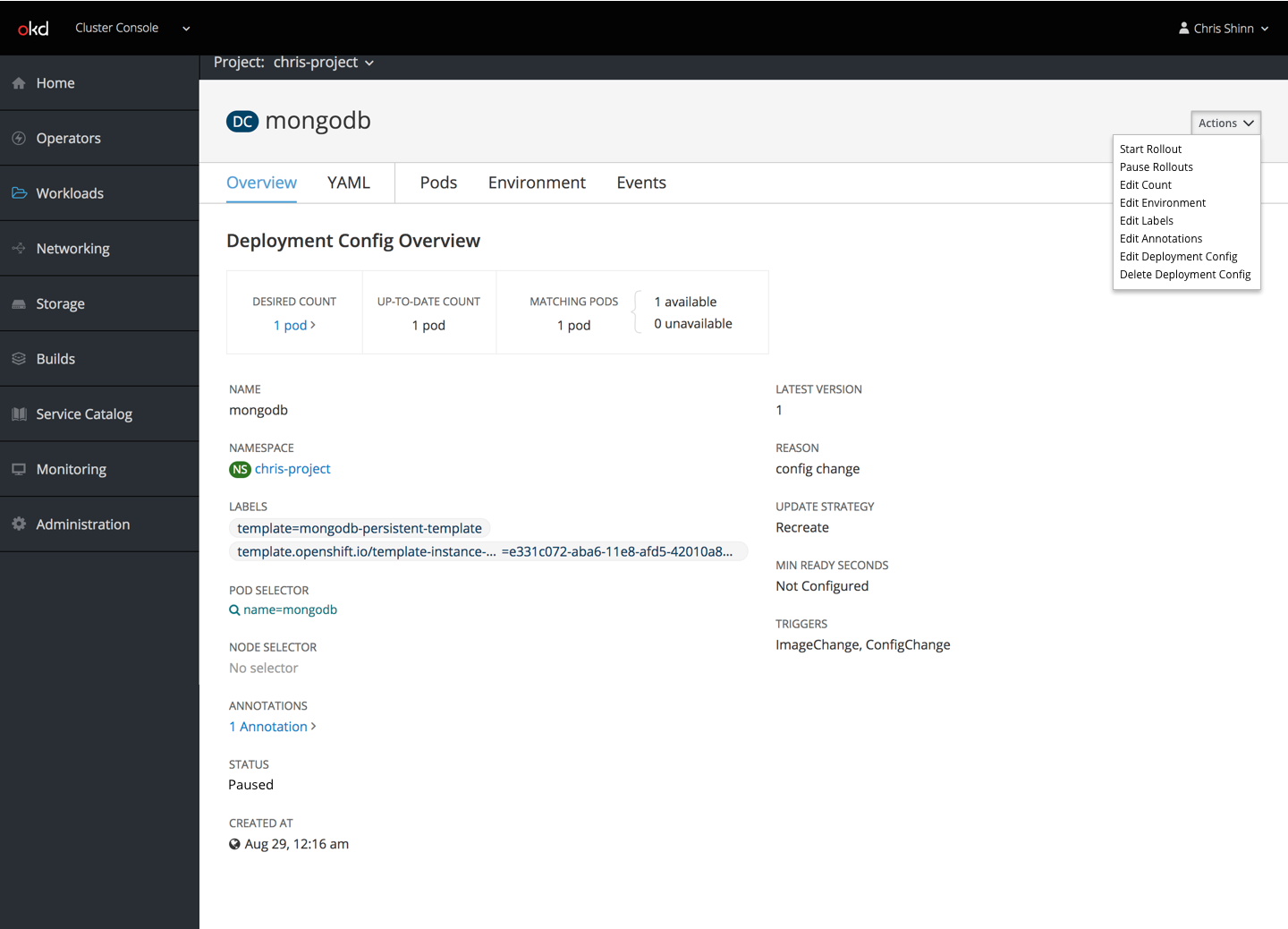 Some objects, such as Deployments and Deployment Configs can be paused. When an object is paused, some of its automated functions do not run until the object is unpaused.